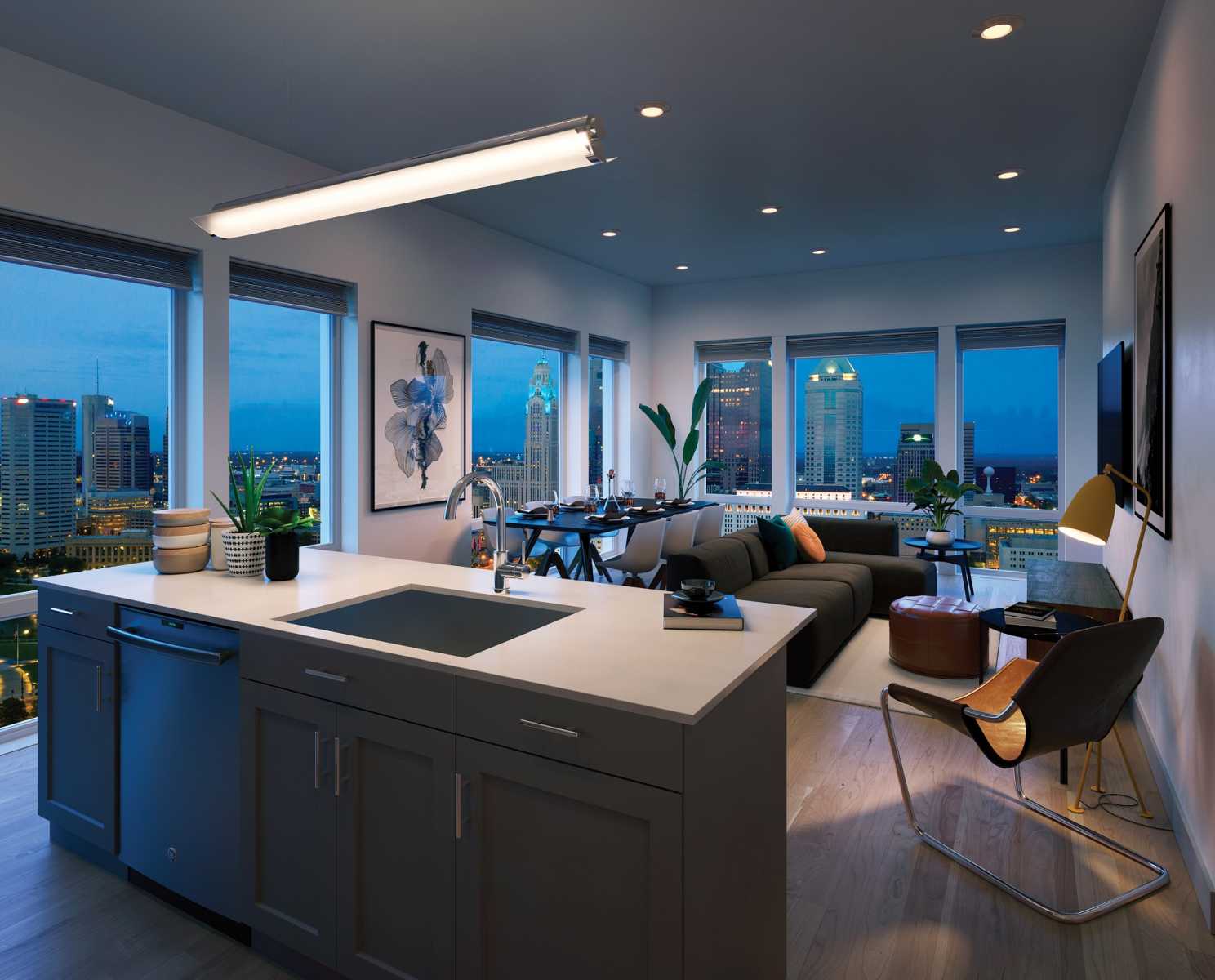 Magazine-style vignette renderings to communicate a desirable lifestyle and highlight design features.
